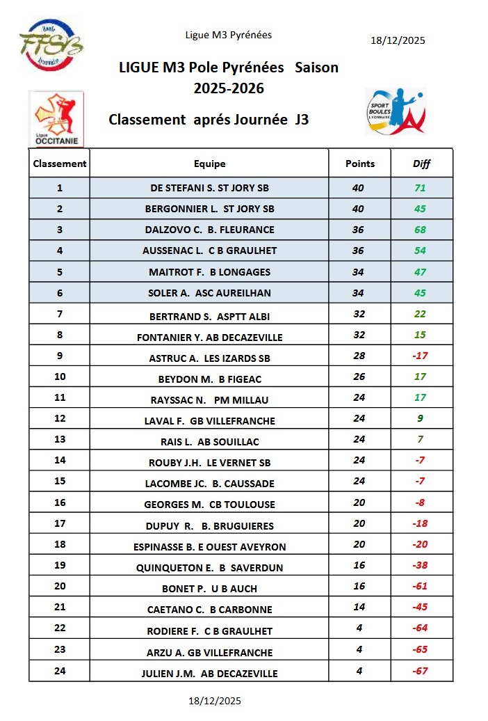 Accueil LIGUE Ligue M3 – Journée3 – le 13 Décembre 2025- CBD31& CBT Publié 10 décembre 2025 Un clique droit sur l’image enregistré ou ouvrir nouvel onglet ————————————————- Journée 4 – 13 Février 2026 Montauban 82 Journée 5 – 7 Mars 2026 Albi 81 Journée 6 – 5 Avril 2026 journée à définir