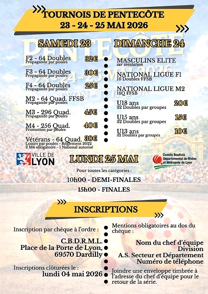 đŸđŸđŸđžÌ€đŠđžđŹ 𝐓ournois Sport 𝐁oules de 𝐏entecĂŽte 23/24/25 mai LYON -2026